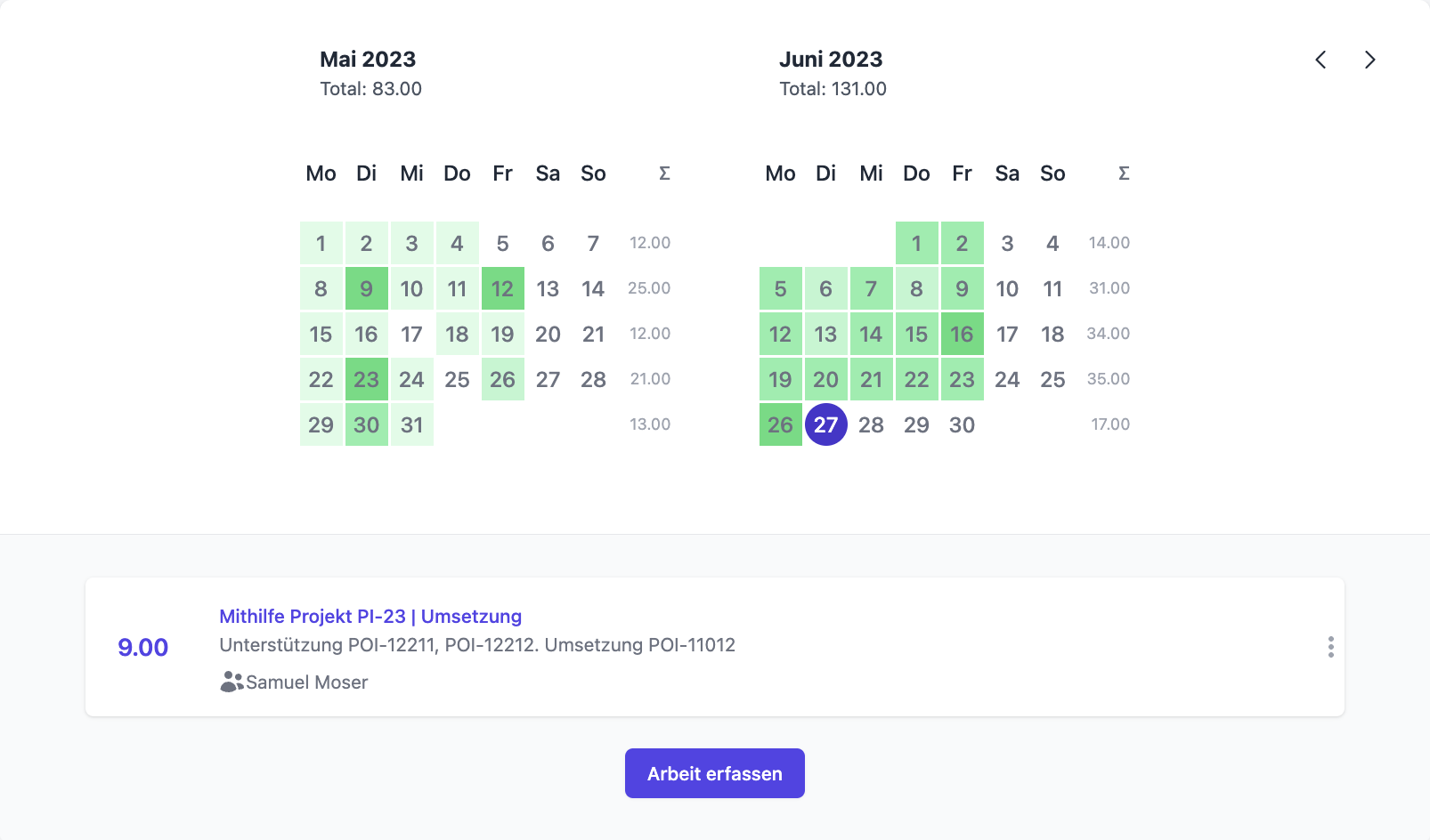 Behalte den Überblick über deine gebuchten Stunden. Mit Jessie kannst du ganz einfach sehen, wo du wieviel gearbeitet hast. Du hast die Wahl, entweder mit einem Timer zu arbeiten, der automatisch die Zeit stoppt, oder manuell deine Buchungen vorzunehmen. Es gibt jedoch noch eine weitere praktische Funktion. Mithilfe von Jessie können deine Kollegen problemlos Dokumente zur Überprüfung an dich senden. Sie haben die Möglichkeit, ihre Dokumente hochzuladen, damit du sie ganz bequem prüfen und bearbeiten kannst. Damit wird die Zusammenarbeit mit deinen Kollegen noch einfacher und effizienter.